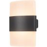 Уличный настенный светильник для декоративной подсветки. Корпус изготовлен из устойчивого к перепадам температуры и коррозии алюминиевого сплава и окрашен черной порошковой краской. В качестве источника света используются интегрированный LED-модуль, свет от которого проходит через опаловый рассеиватель и равномерно распределяется в пространстве.