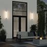 Настенные светильники бра. Корпус — алюминий, цвет — глубокий черный. Вертикальная конструкция с двусторонним световым потоком. LED-технология, теплый свет 3000К. Модели мощностью 12 Вт и 16 Вт. Защита от влаги и пыли — IP54. Подходящее решение для создания атмосферного освещения фасадов и внутренних помещений.