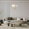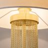 Арматура из нержавеющей стали. Цвет — золото. Абажур — белая ткань. Декоративные цепочки в тон арматуре. Съемный тканевый рассеиватель смягчает световой поток. Источники света — лампы с цоколем Е14.