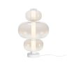Арматура - металл, цвет - белый, черный. Плафоны окрашены в дымчатый или белый полупрозрачные цвета. В плафон установлен LED-источник света с мощным световым потоком. Цветовая температура — 3000К, угол рассеивания — 120 градусов. Внутренний рассеиватель из полупрозрачного акрила создает мягкое свечение. Предусмотрена функция диммирования: touch-переключатель обеспечивает плавное бесступенчатое управление.