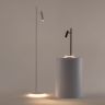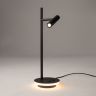 Металлический корпус в черном и белом оттенках. Вращающийся плафон-цилиндр позволяет регулировать направление светового потока. Декоративная подсветка основания. LED источник света, цветовая температура 3000К.