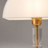 Арматура – металл, цвета – хром, латунь. Хлопковый абажур в белом цвете. Прозрачный акриловый декор в основании. Эстетика Баухауса, трендовая форма абажура. Источник света - лампа с цоколем Е27.