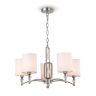 Материал арматуры – нержавеющая сталь, цвет – хром. Материал абажуров – текстиль на ПВХ, цвет – белый. Декор – прозрачное стекло. Акцентные стеклянные кристаллы на рожках со сложной огранкой.