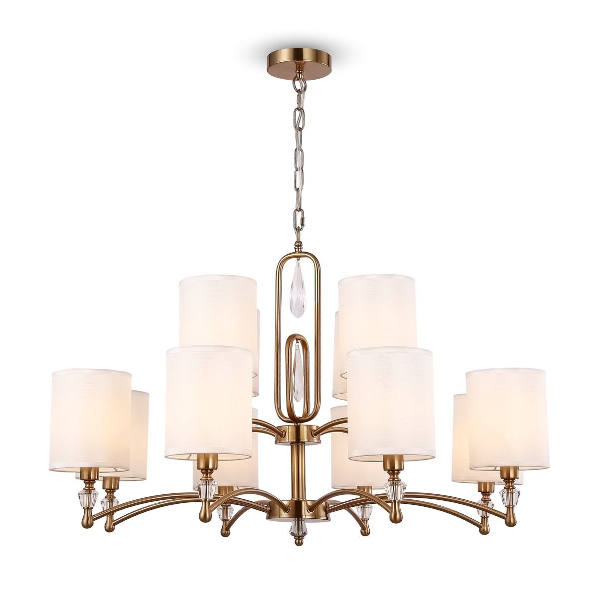 Материал арматуры – нержавеющая сталь, цвет – хром. Материал абажуров – текстиль на ПВХ, цвет – белый. Декор – прозрачное стекло. Акцентные стеклянные кристаллы на рожках со сложной огранкой.