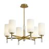 Металлическая арматура: латунь или никель (новинка серии).Белые стеклянные плафоны цилиндрической формы, направленные вверх.. Хрустальное основание с акриловыми каплями. Лампа E27.