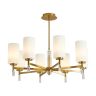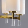 Металлическая арматура: латунь или никель (новинка серии).Белые стеклянные плафоны цилиндрической формы, направленные вверх.. Хрустальное основание с акриловыми каплями. Лампа E27.