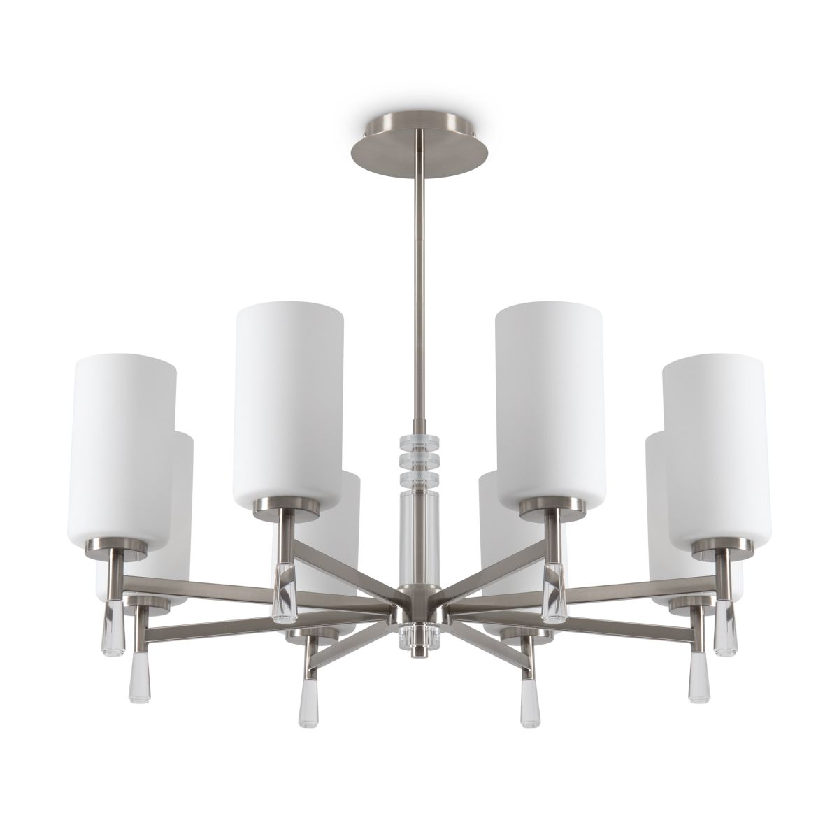 Металлическая арматура: латунь или никель (новинка серии).Белые стеклянные плафоны цилиндрической формы, направленные вверх.. Хрустальное основание с акриловыми каплями. Лампа E27.