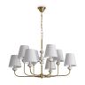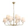 Материал арматуры — металл, цвет — латунь. Подвесные светильники с цоколем E14. Светильники с керамическими декоративными элементами серо бежевых оттенков. Белый абажур, выполнен из натуральной ткани. Сочетание классической элегантности с современным дизайном создает утонченную атмосферу в интерьере.