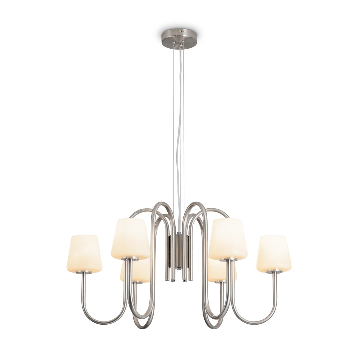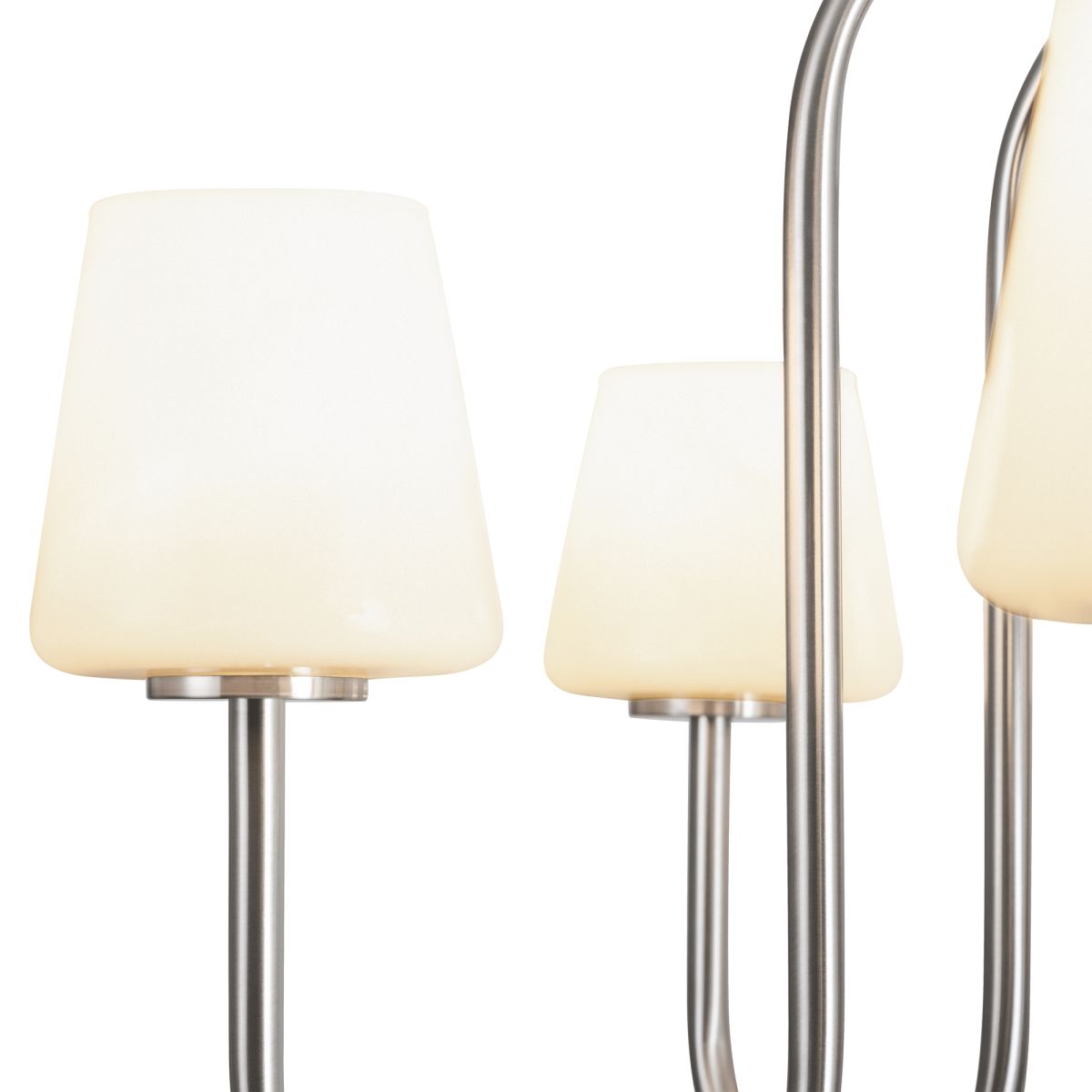 Металлическая арматура матового золота и никеля (новинка).Лампа E14 (не в комлекте). Белые глянцевые стеклянные плафоны мягко рассеивают свет. Минималистичная классика для любых интерьеров.