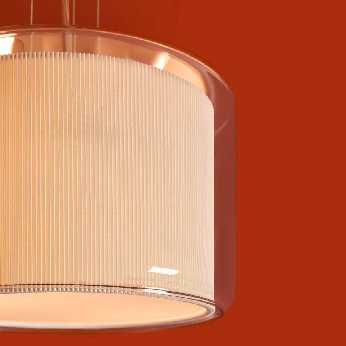 Сочетание стекла и тканевой плиссировки для мягкого рассеянного света. Лампы E27 (в комлекте). Особенность плафонов - их многослойность. В серии представлены подвесной, потолочные и настенный светильники.