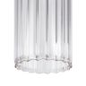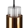 Арматура из металла черного цвета. Плафон – прозрачное ребристое стекло цилиндрической формы. Декоративная металлическая вставка золотого оттенка. Источник света – лампа с цоколем E14.