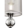Материал арматуры – металл. Цвет – хром. Абажуры из полупрозрачной органзы серебристого оттенка. Декор – хромированные шары. Высота люстр регулируется. Одиночный подвес с цоколем Е27, лампа, бра, торшер и люстры – Е14.