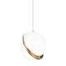 Металлическая арматура. Оттенки – хром, латунь. Плафон – матовое белое стекло с металлическим кантом. Футуристический дизайн, трендовая асимметричная форма. Заменяемый источник света, цоколь Е27.