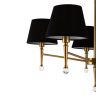 Арматура - металл, плафоны - стекло. Цветовые комбинации арматуры и плафона: черный + прозрачный, черный + янтарный, латунь + прозрачный. Элементы декора - выдувные «бусины» из стекла. Высота проводов регулируется. Источник света - лампа с цоколем GU10.