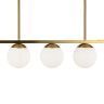 Металлическая арматура. Оттенок – латунь. Плафоны-сферы из матового стекла. Оригинальное конструктивное решение: плафоны размещены на горизонтальной или вертикальной планке. Источник света – лампа с цоколем Е27.