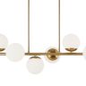 Металлическая арматура. Оттенок – латунь. Плафоны-сферы из матового стекла. Оригинальное конструктивное решение: плафоны размещены на горизонтальной или вертикальной планке. Источник света – лампа с цоколем Е27.