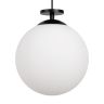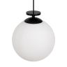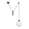 Чаша крепления и элементы корпуса выполнены из металла, цвета - черный и золотой. Плафон-сфера из белого матового стекла. Специальный грузик- противовес позволяет реглуировать высоту светильника. Универсальный дизайн для пространств любых габаритов. Источник света внутри плафона - лампа с цоколем Е27.