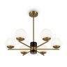 Арматура - металл, цвет - латунь. Мраморные черные элементы в основании. Плафоны-сферы из белого матового стекла с металлической апликацией у основания крепления в цвет арматуры. Сменямый источник света - лампы с цоколем Е27.