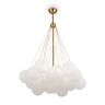 Материал арматуры — металл, цвет — хром/латунь. Подвесные светильники c цоколями E14/E27/G9. Белые стеклянные плафоны с рисунком в виде космических планет крепятся на тонких тросах, которые регулируются по высоте, создавая эффект парящих облаков.