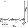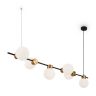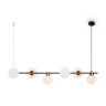 Металлическая арматура, цвет - черный + латунь. Стеклянные плафоны в двух оттенках - матовый белый или дымчатый. Направление плафонов в разные стороны позволяет распределить свет максимально равномерно. Источник светал - лампы с цоколем G9.