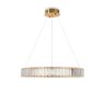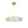 Металлическая арматура в цвете латунь и хром. Хрустальные декоративные кольца с геометричными гранями. LED-источник света. Регулировка цветовой температуры (3000-4000-5000K) и яркости 4G-dimming при помощи пульта (в комплекте).