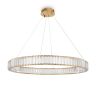 Металлическая арматура в цвете латунь и хром. Хрустальные декоративные кольца с геометричными гранями. LED-источник света. Регулировка цветовой температуры (3000-4000-5000K) и яркости 4G-dimming при помощи пульта (в комплекте).