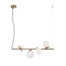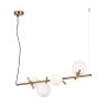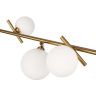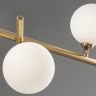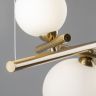 Материал арматуры — рифленый металл, цвет — латунь. Плафоны-сферы из белого матового стекла для мягкого заливающего света. Воздушный образ плафонов, строгие тонкие линии арматуры придадут интерьеру изящество и легкость. Высота подвесов регулируется. Источник света — лампы с цоколем G9.