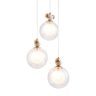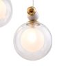 Металлическая арматура, два цвета — латунь и хром. Разные по форме плафоны — цилиндрические или овальные, украшены металлическими шариками. Стекло двойное, прозрачное или с легким матовым напылением. Конструкцию можно регулировать по высоте. Источником света служит лампа с цоколем G9 или Е14.