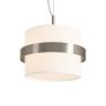 Цилиндрической формы абажур из ткани белого цвета. Декоративная парящая окантовка из металла в цвет арматуры. Регулируется по длине. Компактные размеры подходят для низких потолков и небольших интерьеров. Металлическая арматура, цвет - латунь и никель. Источник света — лампа с цоколем Е14, E27 и для настенного бра дополнительный LED с температурой свечения 3000 K.