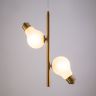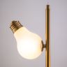 Металлическая арматура, цвета — чёрный и латунь. Прозрачные плафоны-лампочки из стекла в тон арматуры хаотично “разбросаны” по острову светильника. Подвесы регулируются по высоте. Источник света — лампа с цоколем G9.