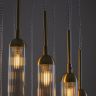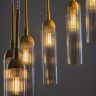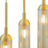 Арматура из металла, цвет — золото. Рельефные плафоны в тренде ZIGZAG. Материал — стекло, цвет — янтарный. Высота подвесных светильников регулируется. Плафоны закреплены на металлическую сферу. Источник света — лампа с цоколем G9.