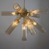 Арматура из металла, цвет — золото. Рельефные плафоны в тренде ZIGZAG. Материал — стекло, цвет — янтарный. Высота подвесных светильников регулируется. Плафоны закреплены на металлическую сферу. Источник света — лампа с цоколем G9.