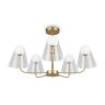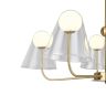 Арматура — металл, цвет — латунь. Двойные плафоны из стекла. Внешний — прозрачный в форме конуса плавно обрамляет контуры внутреннего матового сферического плафона. Свежий взгляд в дизайне на комбинацию форм и фактур. Источником света служит лампа с цоколем G9.