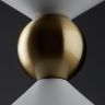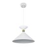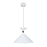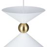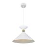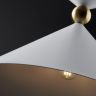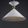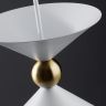 Арматура и плафоны из металла в двух цветах — белом и сером. Плафон состоит из 2-х конусов разных размеров, соединённых золотистым декоративным элементом. Высота регулируется. Идеальны для составления композиций. Источник света — лампа с цоколем Е27.