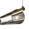 Арматура — металл, цвет — латунь. Плафоны из прозрачного стекла с дымчатым оттенком в форме овала, круга или конуса. Универсальный минималистичный дизайн позволяет составлять комбинации из нескольких подвесов. Регулируемая высота. Тренд «invisible light» - LED-источник света утоплен в основание плафона. Цветовая температура - 3000К.