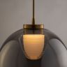 Арматура — металл, цвет — латунь. Плафоны из прозрачного стекла с дымчатым оттенком в форме овала, круга или конуса. Универсальный минималистичный дизайн позволяет составлять комбинации из нескольких подвесов. Регулируемая высота. Тренд «invisible light» - LED-источник света утоплен в основание плафона. Цветовая температура - 3000К.