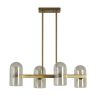 Арматура — металл. Цвет — латунь. Горизонтальные подвесы на твердой ножке. Плафоны из коньячного стекла в форме конуса. Направление плафона у настенного светильника можно регулировать за металлическое основание. Источник света лампа. Цоколь E14.