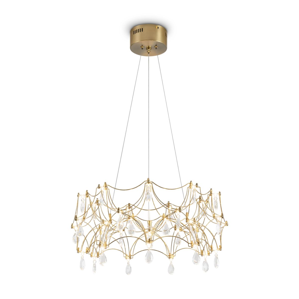 Воздушная конструкция с хрустальными капельками. Металл искусно изогнут и переплетен, образуя причудливый узор. Внутри этой металлической паутины расположены миниатюрные LED источники.