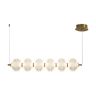 Арматура выполнена из металла в цвете латунь. Прозрачные плафоны. Вертикальные и горизонтальные подвесные светильники разных размеров. LED источник света. Цветовая температура 3000К.