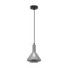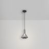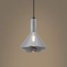 Металлическая арматура черного цвета. Плафон из глянцевого стекла серого оттенка. Нетривиальная форма плафона, расширенная к низу. Источник света – лампа с цоколем E14.