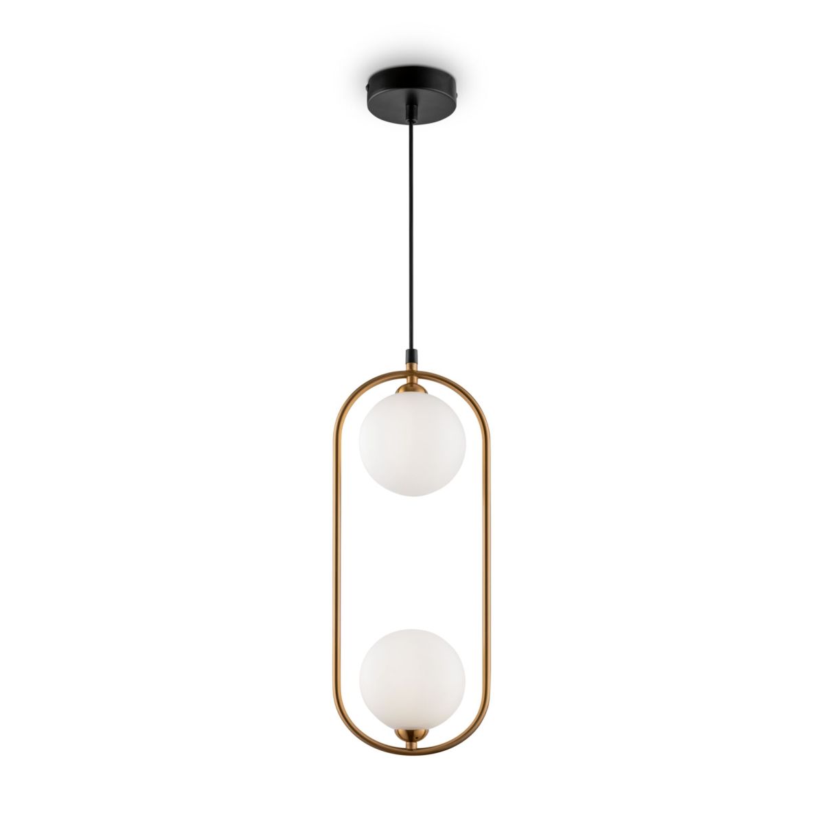 Арматура из металла в трех оттенках: белый, черный, латунь. Плафоны-сферы закреплены на округлом металлическом каркасе. Материал плафонов — выдувное стекло, цвет — белый. Высота подвесных моделей регулируется.