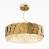 Арматура – нержавеющая сталь, цвет – латунь. Комбинация фактурных и гладких металлических пластин в декоре. Стеклянные подвески обрамляют источники света.
