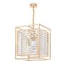 Арматура – металл, оттенки – хром, золото. Двойной геометрический плафон. Металлический каркас плафона окрашен в тон арматуре. Декор – стеклянные кри сталлы с трапециевидной огранкой. Высота подвесных моделей регулируется.