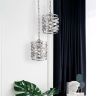 Арматура из нержавеющей стали, цвет арматуры – хром. Металлический каркас абажура декорирован прозрачным хрусталем. Высота подвесных моделей регу лируется.
