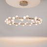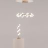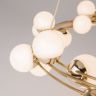 Арматура из металла в золотом цвете. Плафоны-сферы — белый пластик. Дизайн с имитацией молекулярной структуры. LED-источники света.