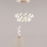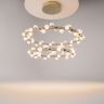 Арматура из металла в золотом цвете. Плафоны-сферы — белый пластик. Дизайн с имитацией молекулярной структуры. LED-источники света.