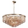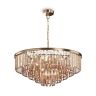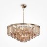 Арматура из металла в трех оттенках: латунь, хром, золото. Многоярусный декор. Подвески: прозрачное (арматура – хром, латунь) и янтарное (арматура – золото) стекло. Высота подвесных моделей регулируется.