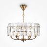Арматура из металла, цвет – латунь. Декор – пластины из прозрачного стекла, инкрустированные в латунную основу. Источники света в форме свечей. Цоколь Е14.