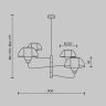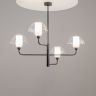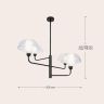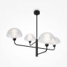 Металлическая арматура, цвет - черный. Светильники стилизованы под форму песочных часов с обтекаемой формой. Керамические элементы с глянцеовй глазурью. Подвесные светильники с плафонами из белой керамики с прозрачным, черно-белым, золото-белым и белым стеклом. Регулируемая высота подвесных светильников.