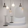Металлическая арматура, цвет - черный, белый. Выдувной плафон-шар из стекла с вытянутым цилиндрическим основанием в трех цветах: дымчато-черный, туманно-белый, бежево-коньячный. LED-источник света в основании плафона. Цветовая температура 3000К. Два диаметра плафонов и регулируемая длина проводов для создания разнообразных композиций.